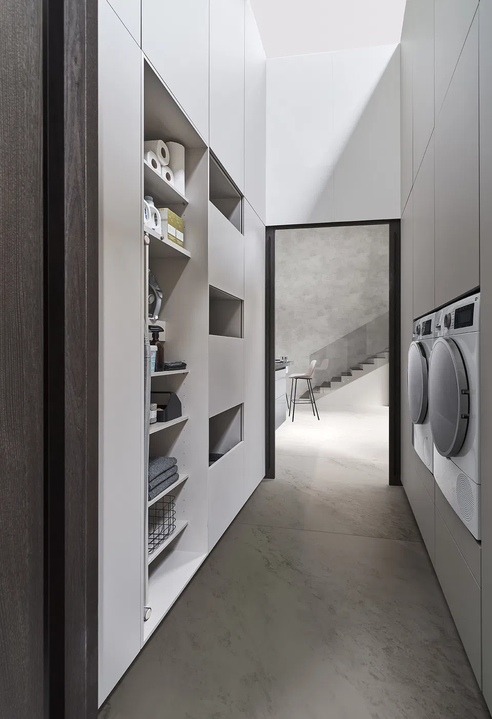 Ein Highlight ist das offene Regalsystem ICONIC in Bergamo Ulme, das durch indirekte LED-Beleuchtung und einen minimalen Wandabstand eine faszinierende dreidimensionale Wirkung erzielt.