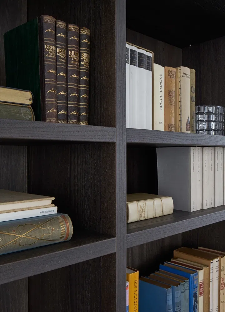 Der Raum als Ganzes, Küche und Wohnen sind eins: Diese Philosophie findet ihren Ausdruck im Planungsansatz. Die Küchenplanung umfasst den hochwertigen Innenausbau bis hin zu maßgefertigten Regalsystemen.